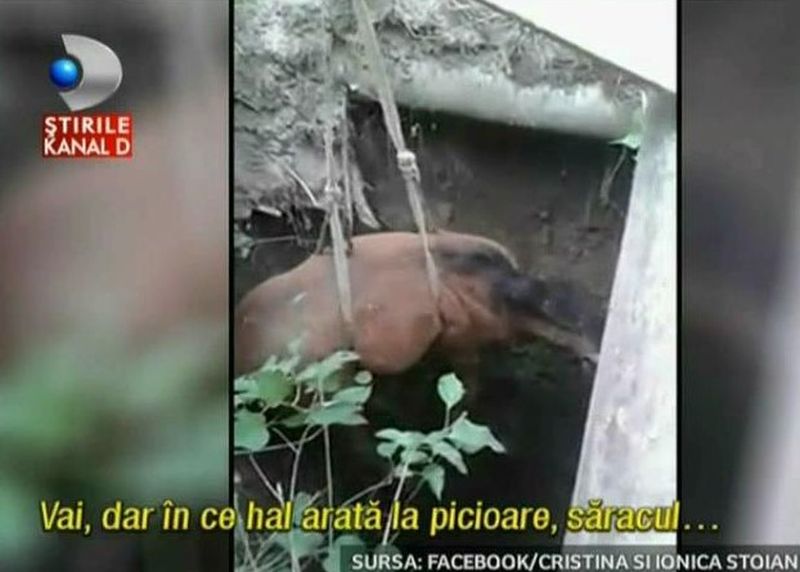 Dupa aproape o ora de chinuri, manzul a fost scos din fantana adanca de peste 3 metri. Teafar si nevatamat.