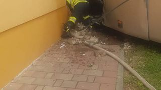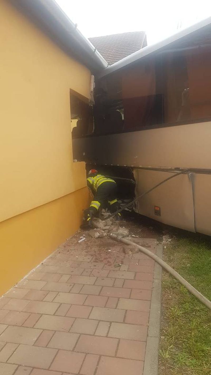 Un autocar în care se aflau 20 de persoane a fost implicat într-un accident rutier, după ce s-a ciocnit cu o maşină, autocarul intrând într-o casă în care se aflau două persoane cu dizabilităţi. O ţeavă de gaz a fost spartă.