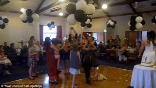 Tinea in brate un bebelus cand mireasa a aruncat buchetul! Momentul aruncarii buchetului este unul marcant la orice nunta. Domnisoarele care isi doresc sa se marite se aduna in spatele miresei cu dorinta de a prinde buchetul.