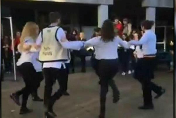 Si romanii de peste hotare au sarbatorit romaneste! Aseara, sute de compatrioti au dat mana cu mana si au incins o hora in centrul Madridului, iar tinerii nostri, plecati la studii in Anglia, au incins hore in campusul Universitatii Essex. ##VIDEO36668##
