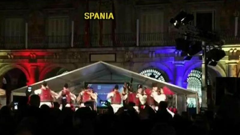 Cu tricolorul in mana, romanii de peste hotrare si-au mai alinat dorul de casa cu melodiile si dansurile Ansamblului Folcloric "Transilvania". Artistii din Maramures le-au amintit romanilor plecati din tara de ritmurile de acasa. Dar poate cel mai emotionant moment a fost atunci cand piata centrala din Madrid a fost colorata in rosu, galben si albastru.