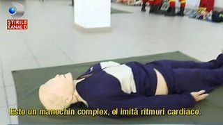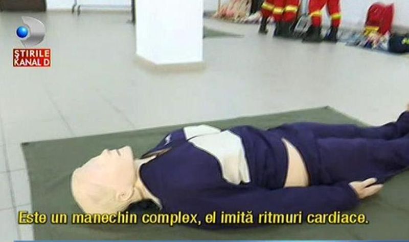 "Este un manechin complex, el imita ritmuri cardiace. Pompierul are in dotare, si poate sa foloseasca, defibrilatorul semi-automat."