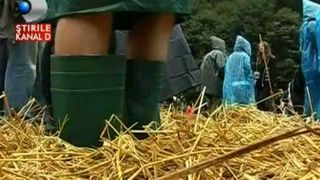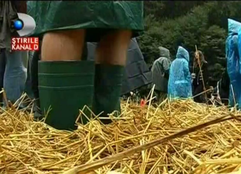 Si aceasta tanara, pe tocuri si in ciorapi, se ia in piept cu vremea rea. Spiritul sa fie vesel, ca restul nu mai conteaza! „ E foarte fain chiar daca ploua, bocancii rezista"