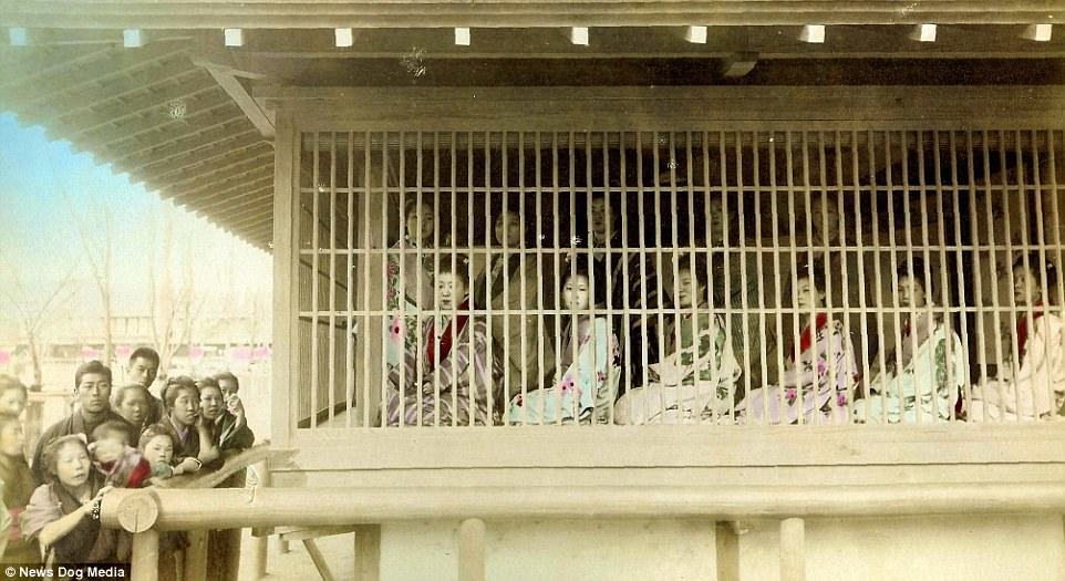 News Dog Media a dat publicitatii cateva fotografii foarte rare facute intre anii 1890-1900 in care tinerele apar in custi, aranjate si gata sa-si ofere serviciile.