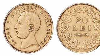 Cea mai scumpă moneda românească este considerată a fi „polul lui Carol I“, cu o valoare nominală de 20 de lei. Acesta a fost emis în 1868, purta efigia domnitorului român, avea 6,45 de grame – din care 90% aur și 10% cupru – și a fost emis în maxim 200 de exemplare. Acesta făcea parte din planul domnitorului de sfidare a Imperiului Otoman și de acțiune independența. Nu a fost pus niciodată în circulație, ci trimis spre topitoriile turcești.
