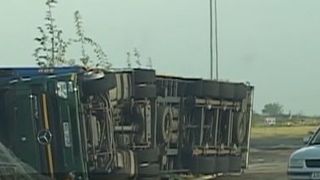 2 din 4 | Tornada in vestul tarii. Mai multe TIR-uri s-au rasturnat, iar un tren a fost la un pas de catastrofa