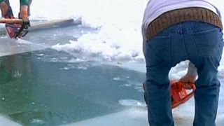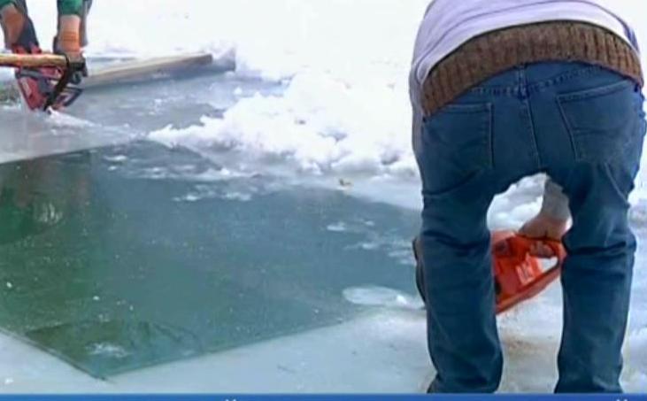 Nu exista sarbatoare de Boboteaza in Moldova, fara crucea sculptata in gheata. Cum s-au descurcat astazi localnicii cu bucatile imense de gheata, vedeti imediat? ##VIDEO41212##