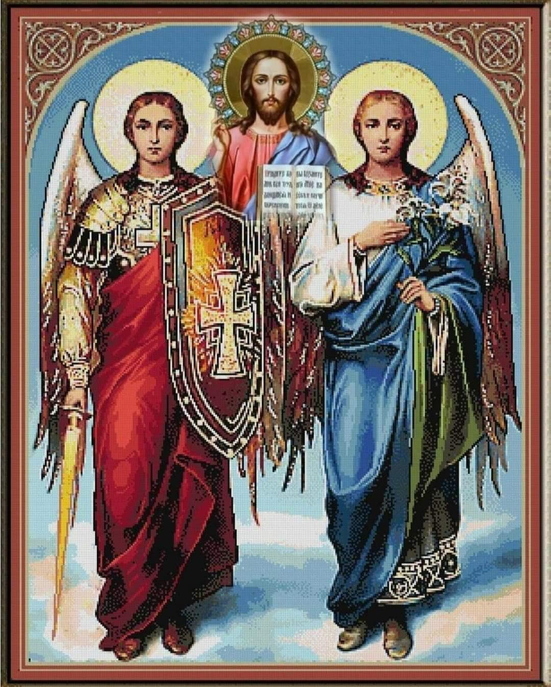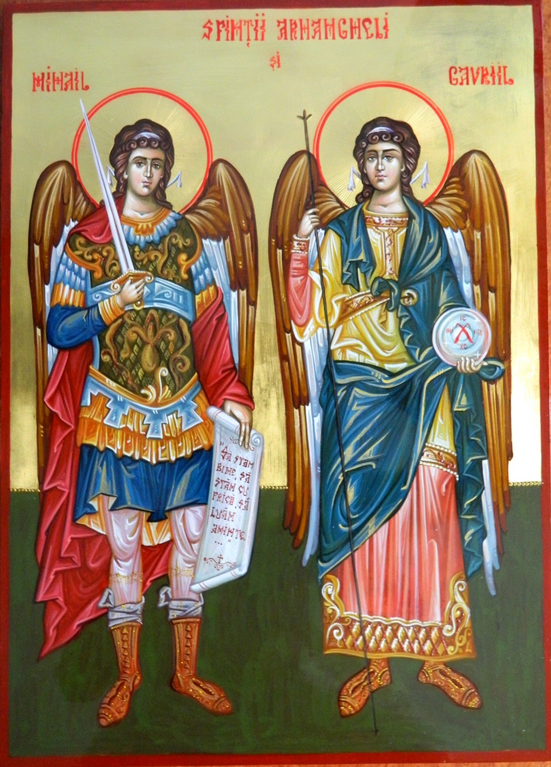 Cei doi arhangheli din calendarul bisericesc sunt conducătorii cetelor de îngeri, cu aripi, care poartă săbii ca un simbol al biruinței.