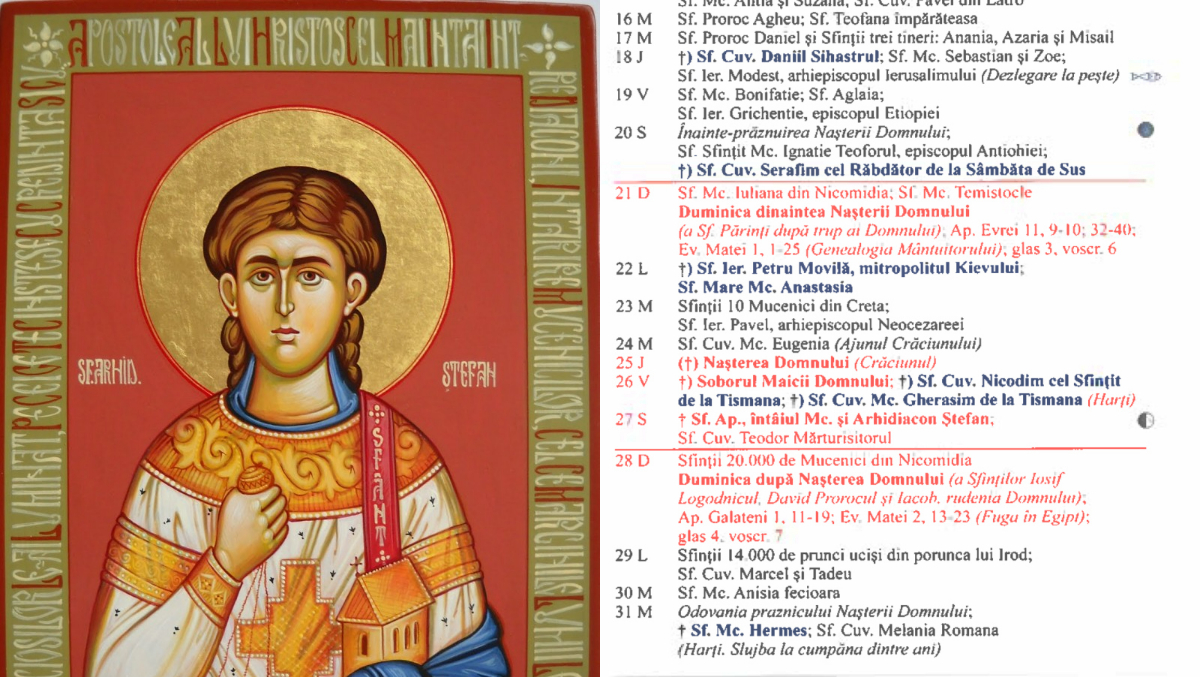 Pe 27 decembrie 2025, Biserica Ort odoxă îl prăznuiește pe Sfântul Apostol și Arhidiacon Ștefan, întâiul mucenic al creștinătății, una dintre cele mai importante figuri ale Bisericii primare și un model desăvârșit de credință, jertfă și iubire față de Hristos.