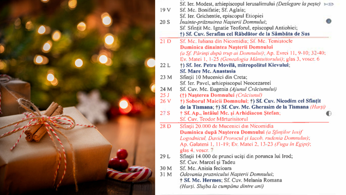 Ce sărbătoare este pe 24 decembrie în Calendarul ortodox