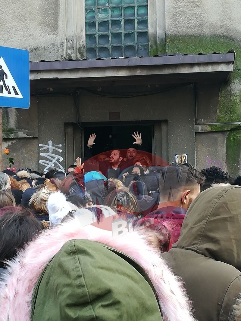 Isteria este atat de mare in acest moment, incat bodyguarzii abia reusesc sa stapaneasca multimea! Mai mult, la fata locului sunt si mame cu copii in carucior care incearca sa intre in fata si sa aleaga cu o vestimentatie de lux de la vedeta.