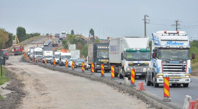 Poliţiştii mai informează că traficul este îngreunat între localităţile Mogoşoaia şi Otopeni, respectiv Tunari şi Otopeni, din cauza unei coloane de autocamioane care circulă cu viteză redusă, pe prima bandă, pe sensul către Otopeni.