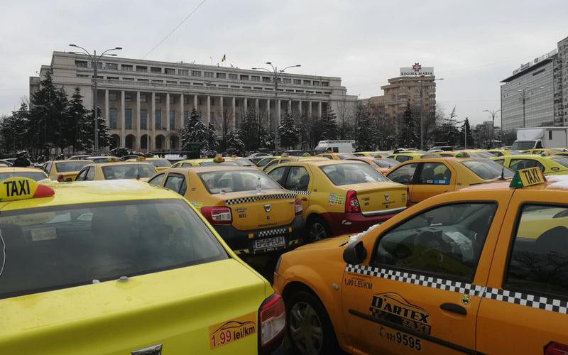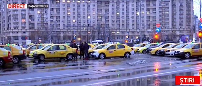 Traficul este blocat astăzi în centrul Capitalei în urma protestului taximetriștilor. Sute de taximetre sunt parcate în faţa Guvernului.