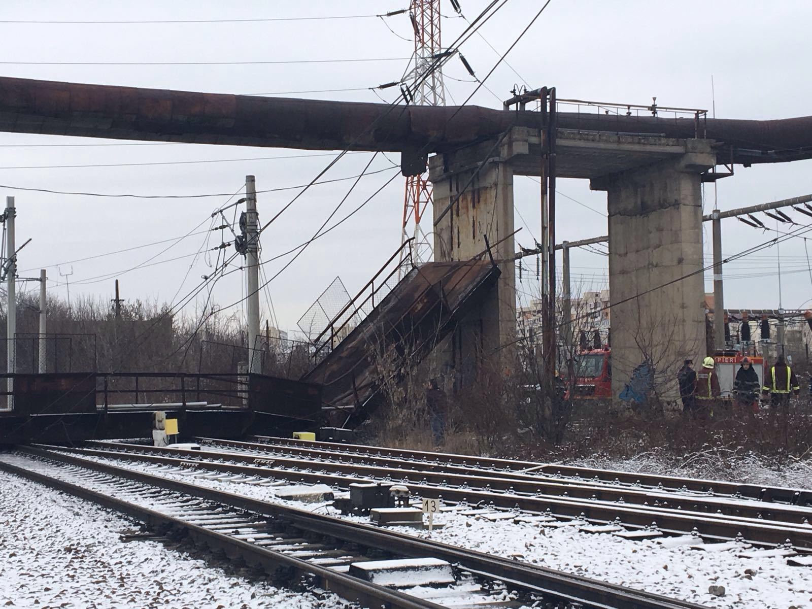 In momentul in care pasarela s-a prabusit, in zona nu treceau nici garnituri feroviare, nici oameni.
