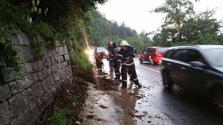 Potrivit purtatorului de cuvant al Inspectoratului pentru Situatii de Urgenta (ISU) Prahova, Raluca Vasiloae, pompierii intervin, sambata seara, pe DN 1, în zona Posada, unde în urma unei ploi torentiale carosabilul este partial acoperit cu apa, pietre, nisip şi crengi.