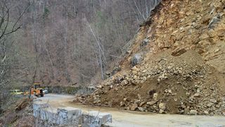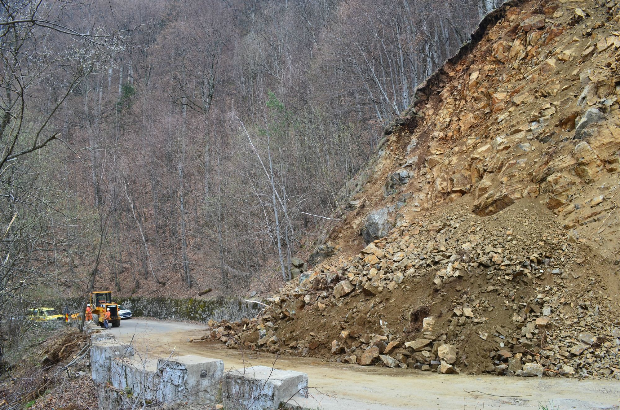 Trafic intrerupt pe drumul dintre Curtea de Arges si Baraj Vidraru din cauza caderilor de pietre de pe versant