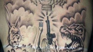 Femeia a fost identificată rapid datorită unui tatuaj mare pe spate, plin de simboluri ale bandelor.