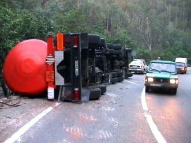 Traficul pe DN 2, în Vrancea, blocat după ce o cisternă încărcată cu butan a fost lovită de un taximetru; un şofer a fost rănit