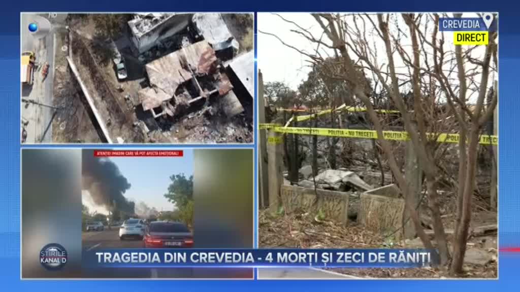 Aici, la Crevedia, anchetele continuă. Autoritățile au mers să evalueze pagubele materiale pentru că știm foarte bine că 8 case au fost distruse în totalitate, iar alte zeci de locuințe au fost afectate grav de suflul exploziei.