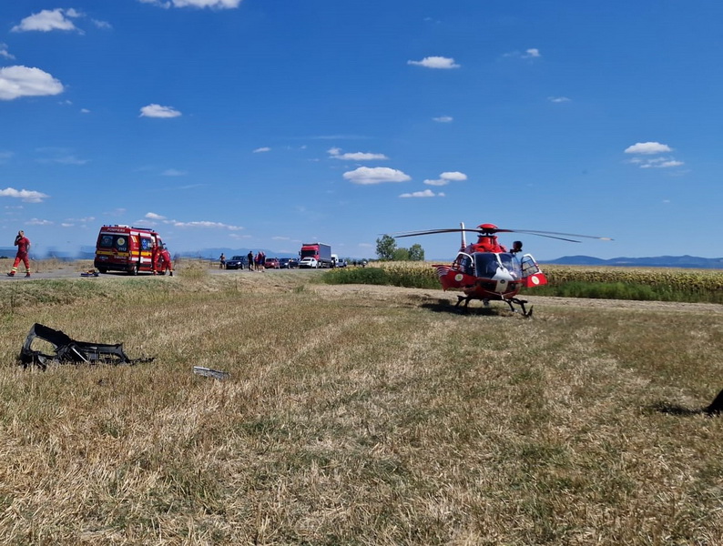 Ca prin minune, însă, după ce mașina familiei, care conducea regulamentar, s-a rostogolit pe câmp și femeia cu cele două fiice ale sale au fost aruncate în afara acesteia, soțul a ieșit pe picioare dintre fiarele mașinii.