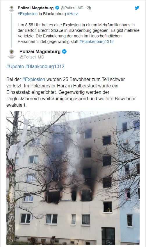 Explozia s-a produs într-un bloc situat la periferia oraşului Blankenburg. În apropiere se află o şcoală primară dar şi o creşă. Cei aproape 100 de copii aflaţi în creşă au fost mutaţi provizoriu în alte locuri.