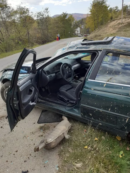 Mașina s-a răsturnat și apoi a revenit pe roți