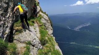 Imaginile postate de alți cățărători din escaladarea pe Brâna Aeriană sunt de-a dreptul înfricoșătoare.