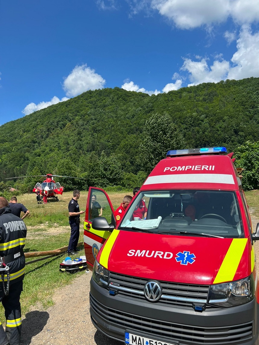 La fața locului s-au deplasat două echipaje de pompieri militari din cadrul Staţiei Ştei şi elicopterul SMURD.