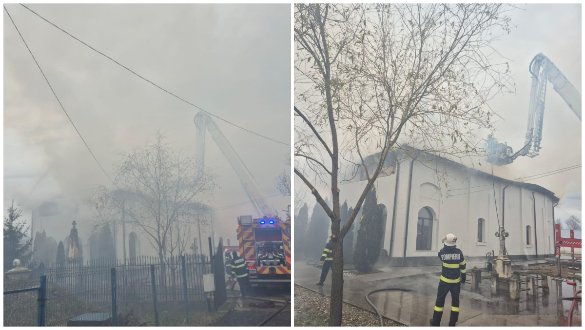 La sosirea pompierilor, incendiul se manifesta cu degajare mare de fum, la acoperișul lăcașului de cult, pe o suprafață de aproximativ 250 mp.