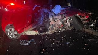 În urma impactului, motorul autoturismului s-a desprins din caroserie și a zburat câţiva metri.