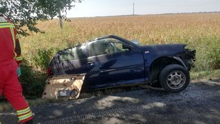 2 din 4 | Tragedie lângă Arad. O șoferiță a intrat frontal într-un copac. Elicopterul SMURD, chemat de urgență