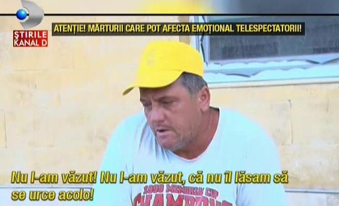 „Nu l-am vazut! Nu l-am vazut ca nu il lasam sa se urce acolo! Daca s-a suit fara sa-l vada nimeni! nU-l lasam sa urce acolo! Cine-l lasa sa se urce”, spune tatal.