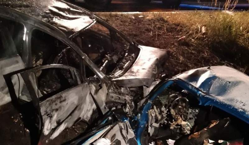 Cele două mașini au ieșit de pe carosabil și au luat foc.