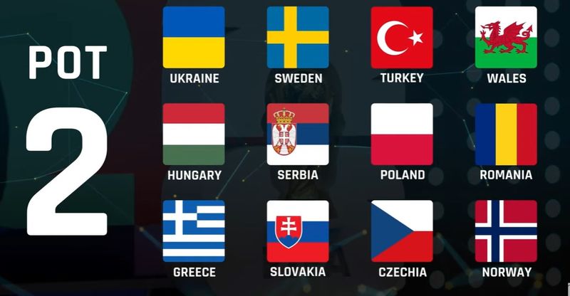 Urna 3: Scoția**, Slovenia**, Irlanda**, Albania, Macedonia de Nord, Georgia**, Finlanda, Islanda**, Irlanda de Nord, Muntenegru, Bosnia-Herțegovina, Israel