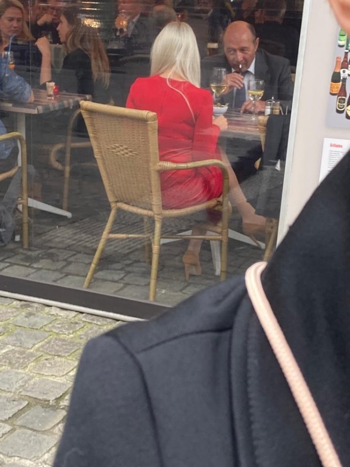 Jurnalistul Dan Bucura a publicat două fotografii cu Traian Băsescu și o blondă misterioasă, surprinși în timp ce iau masa la un restaurant din Bruxelles.
