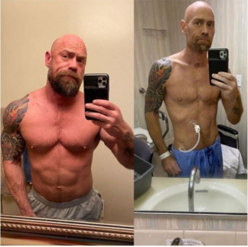 Bărbatul s-a fotografiat înainte infectării și după ce a ieși din spital, iar într-o perioadă de șase săptămâni a slăbit nu mai puțin de 23 de kilograme.