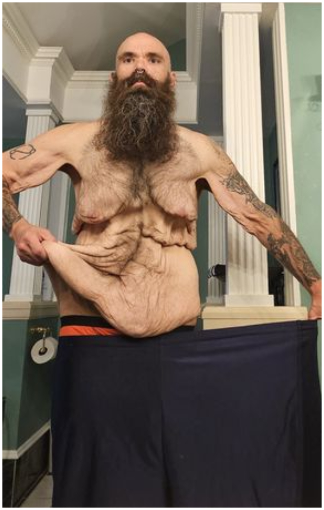 Americanul Jeff Peters din Chicago, Illinois, a pierdut aproape 150 de kg din greutatea sa corporală și a ajuns de nerecunoscut chiar și pentru prieteni. Acum se confruntă cu o altă problemă: cum scapă de pielea reziduală care atârnă pe el?