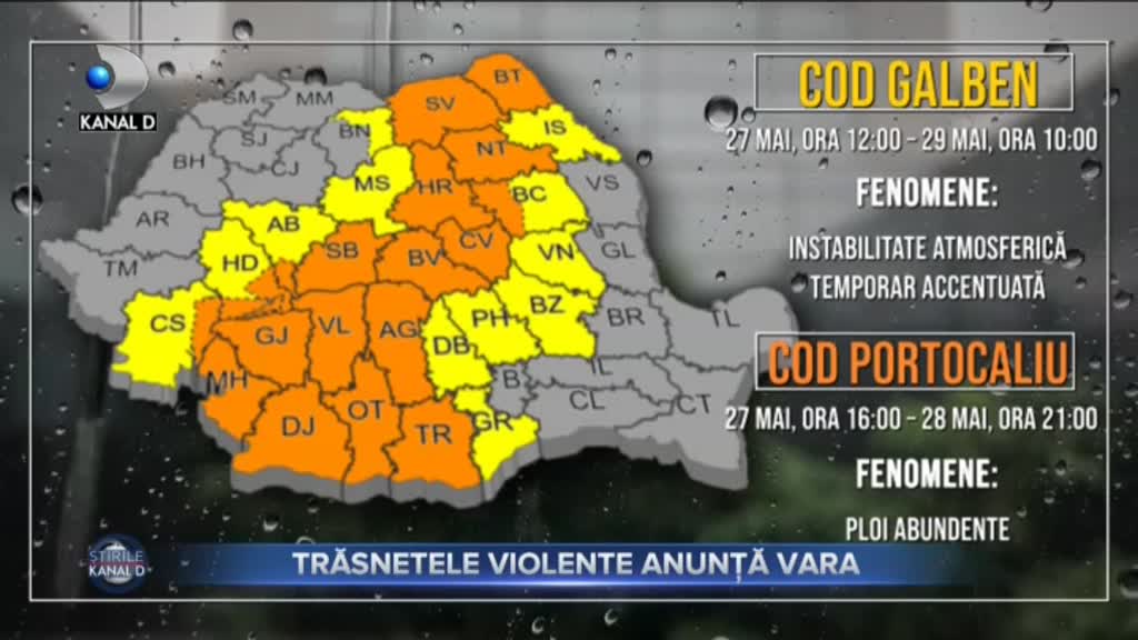 Stirea "TRĂSNETELE VIOLENTE ANUNȚĂ VARA" difuzata in cadrul Stirilor KANAL D din 27 05 2021