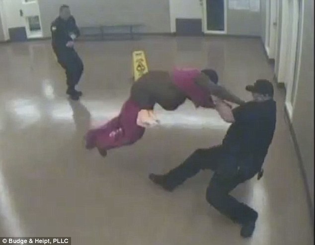 Imaginile il arata pe detinut care se sprijinise de un perete si se plangea ca nu poate sa respire. Imediat apare langa el un paznic care il tranteste pe Michael la pamant. Acestuia i se alatura alti alti angajati ai inchisorii, iar unul dintre acestia ii pulverizeaza detinutului spray cu piper in fata, in ciuda faptului el ii implora sa il lase: "Va rog, nu pot sa respir. Am pneumonie!"