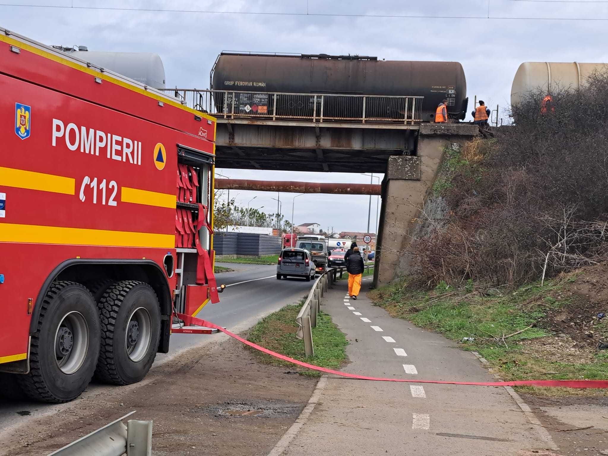 4 din 4 | Tren cu cisterne de motorină, deraiat pe un pod la Arad. Pericol de explozie - FOTO