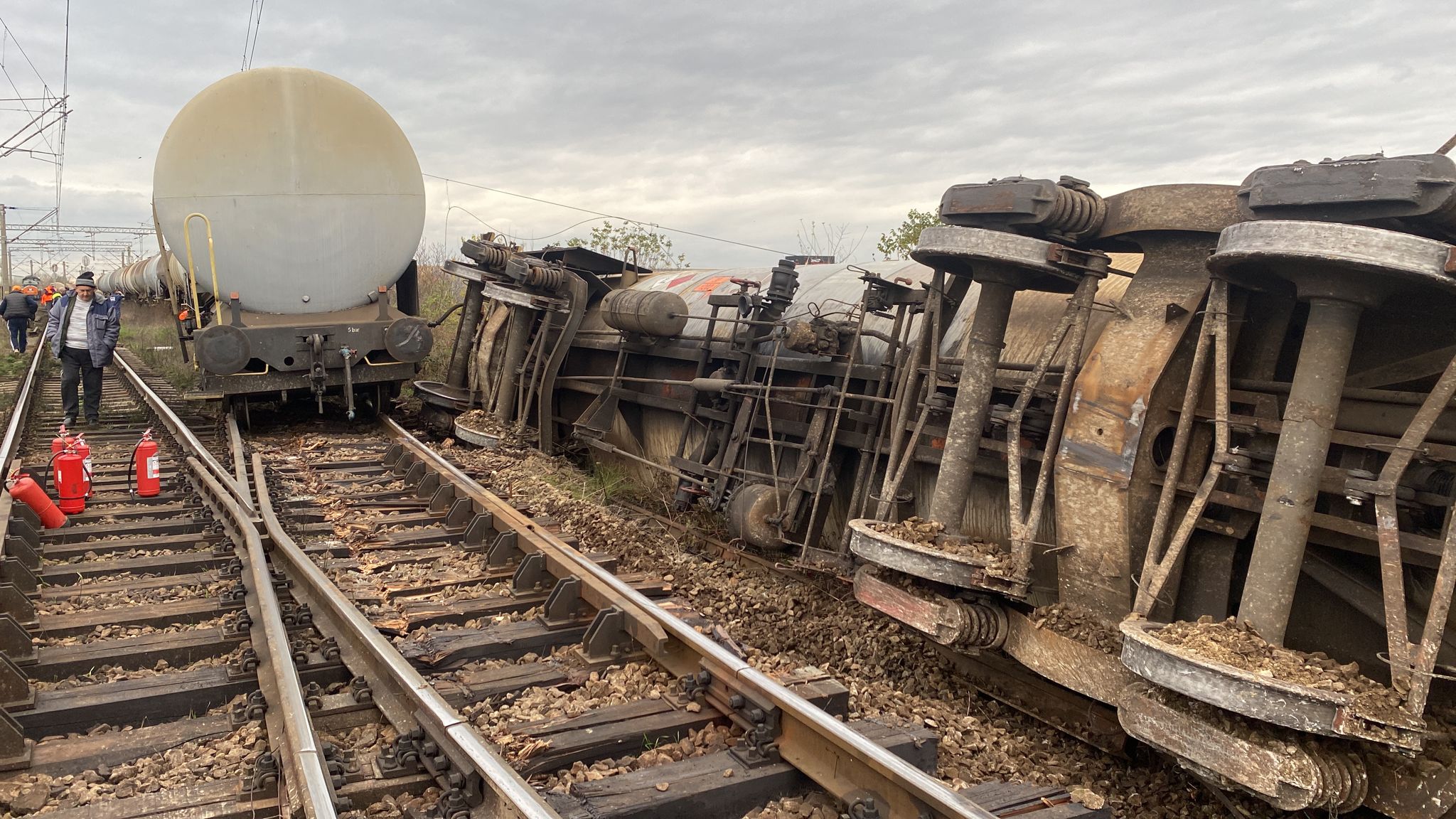 Potrivit presei locale, doua cisterne au deraiat de pe linii, incidentul fiind urmat de un incendiu.
