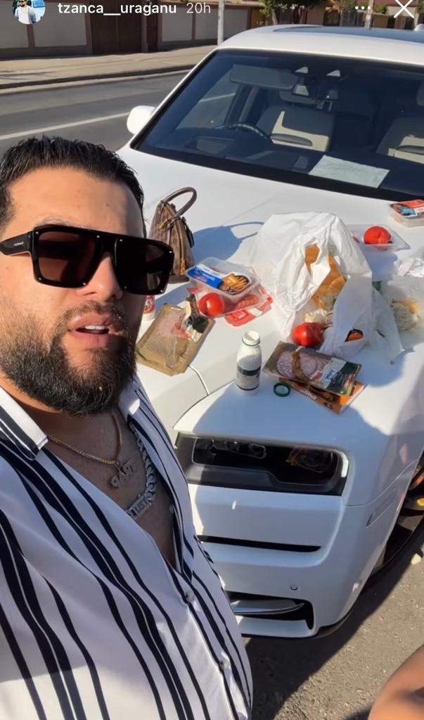 Tzancă Uraganu uimește din nou. El a mâncat salam cu brânză și roșii pe capota Royce Rolls-ului. Imaginile au fost publicate chiar de manelist.