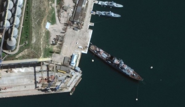 Imaginile din satelit ale companiei Maxar Technologies au localizat în data de 10 aprilie nava Moskva la nord-vest de Sevastopol.
