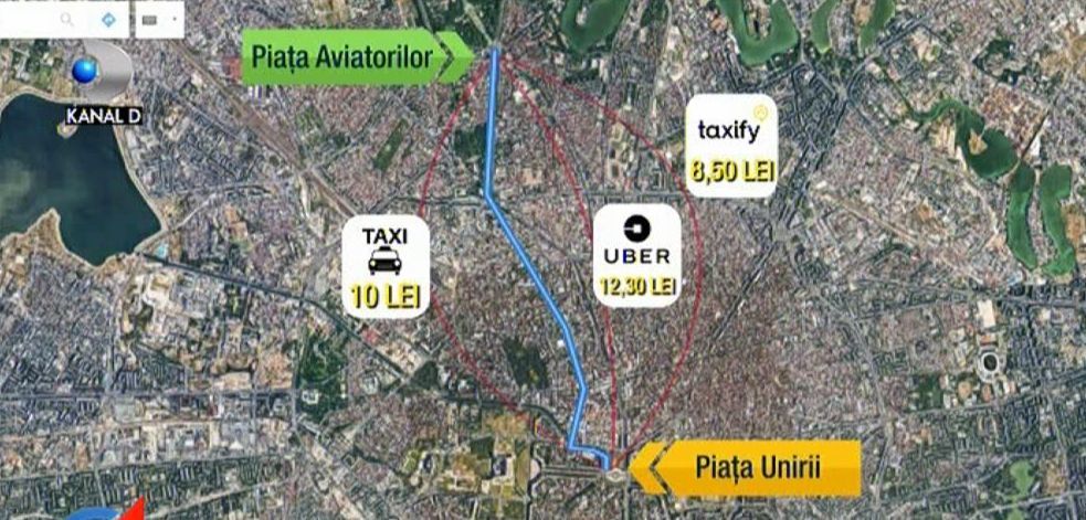 Cat doua sticle de suc, atat a ajuns sa coste o cursa cu soferul prin Capitala. Atentie, insa, nu vorbim despre clasicele taximetre, ci despre "rivalii" de ultima generatie ai clasicelor masini galbene. Aceasta este concluzia la care a ajuns o echipa a stirilor Kanal D, dupa un experiment realizat cu o camera ascunsa.