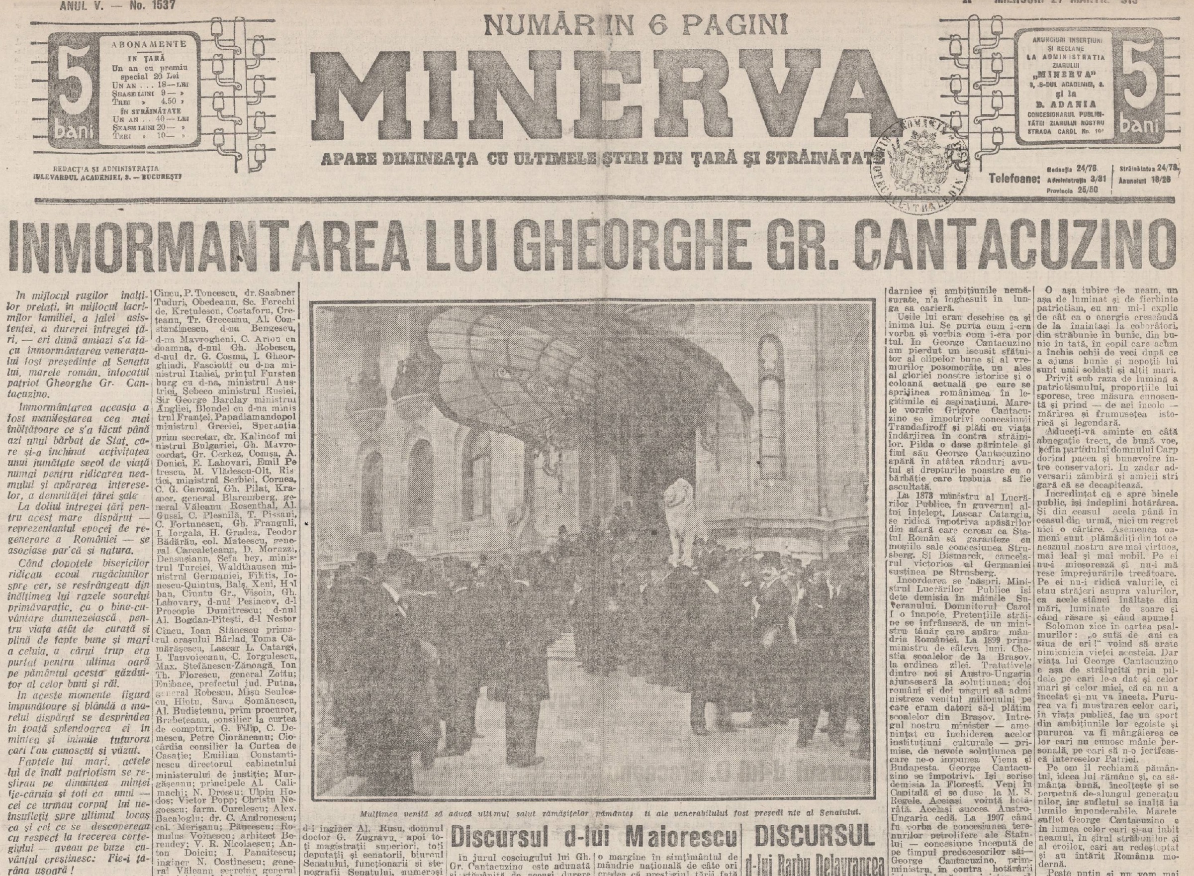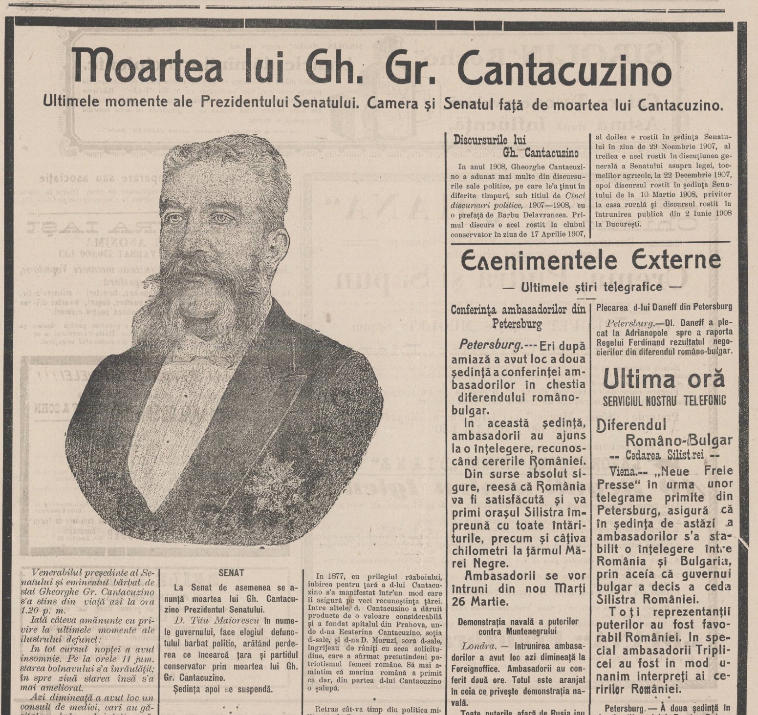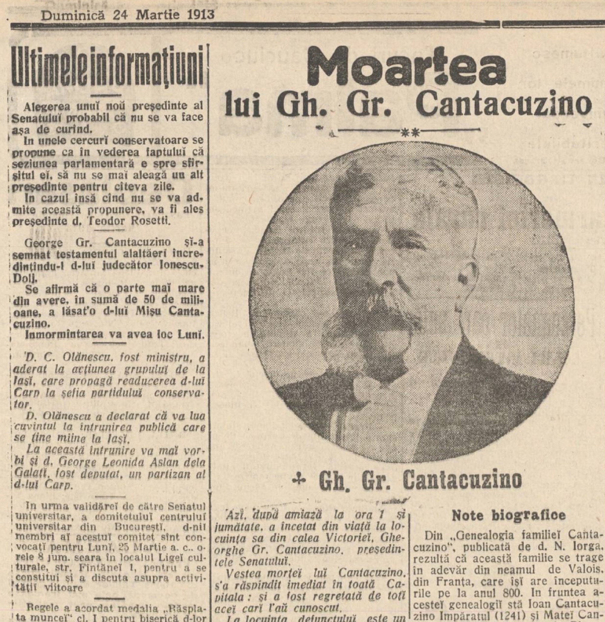 Dar în acea dimineață de martie, glumele se opriseră. Moartea lui Gheorghe Grigore Cantacuzino însemna sfârșitul unui capitol din istoria României. „ Trecerea în neființă a acestui venerabil bătrân însemnează o mare pierdere pentru țară, pentru Coroană și pentru Senat ”, relata Adeverul în 1913 – ziar devenit Adevărul.