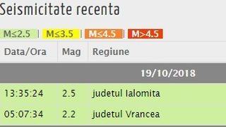 Tot astăzi, un alt seism s-a produs în Vrancea. Cutremurul a avut o magnitudine de 2,2 pe scara Richter şi s-a produs la o adâncime de 105 kilometri.