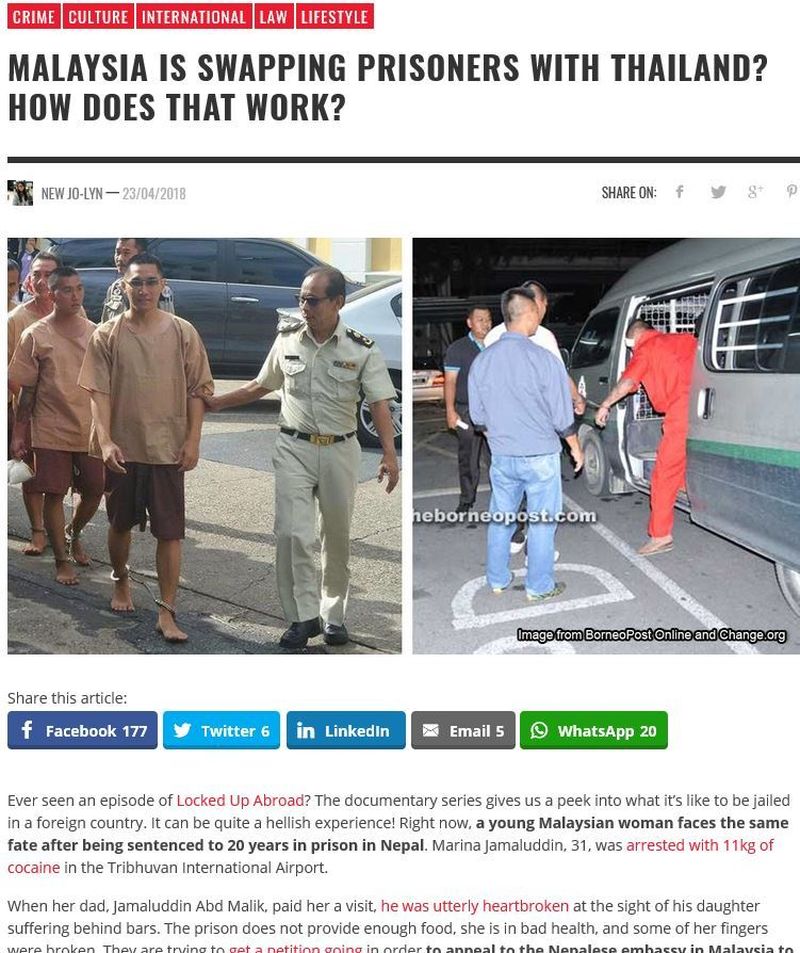 În acest moment, în închisorile din Malaezia se află peste 2.000 de deţinuţi care sunt eligibili pentru un astfel de schimb, conform unui raport al guvernului malaezian.