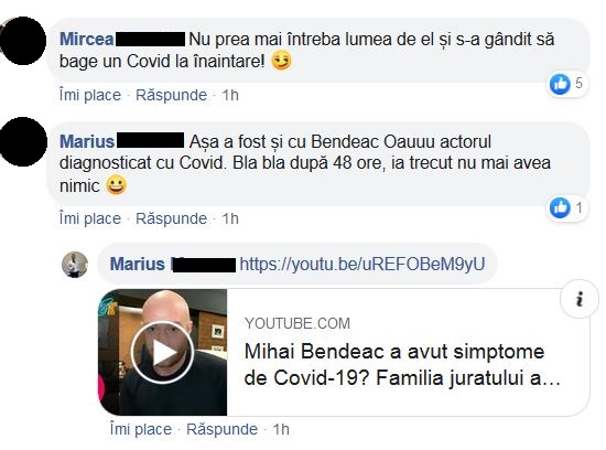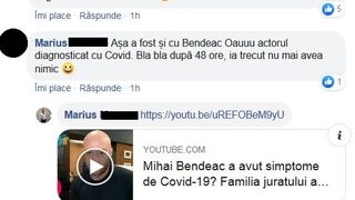 ”Așa a fost și Bendeac, actorul diagnosticat cu COVID. Blabla, după 48 de ore i-a trecut, nu mai avea nimic”.