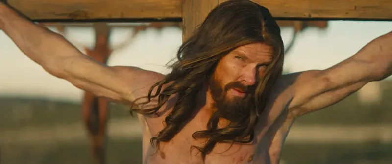 Legenda ecranului, în vârstă de 47 de ani, joacă rolul unui cerșetor pe nume Benjamin în filmul "Cartea lui Clarence", dar este confundat cu liderul religios din urmă cu 2000 de ani și e crucificat.