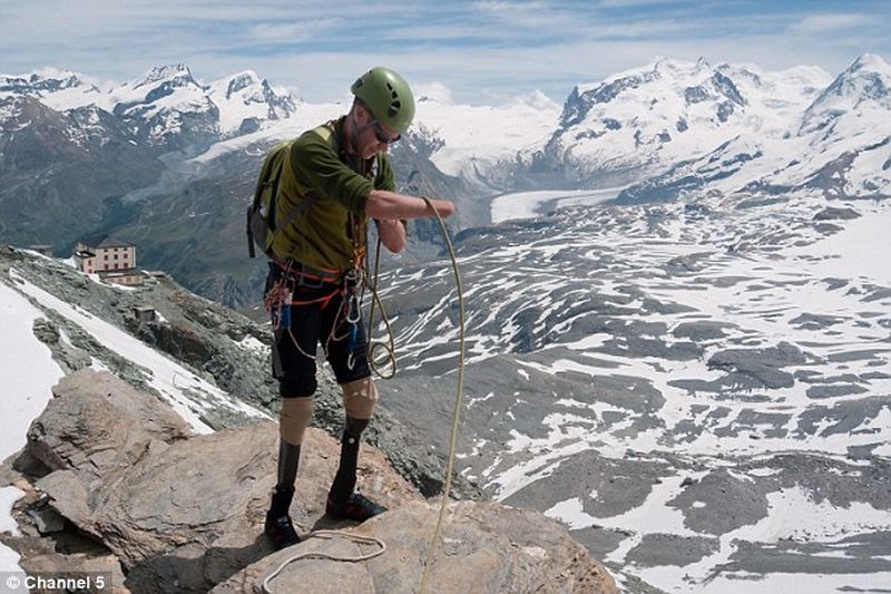 El s-a antrenat timp de cinci ani inainte de se incumeta sa urce pe Matterhorn, aventura in care a fost insotit de doi ghizi. ''A fost o ascensiune de vis, o zi fantastica.Escaladarea muntelui a fost partea cea mai usoara. Pregatirea si nereusitele anterioare au fost cele mai grele'', a declarat barbatul. Acesta a reusit sa urce pe varf ajutat de proteze si de bete concepute special pentru el, iar uneori si-a folosit ce i-a mai ramas din maini pentru a se tine de corzi.
